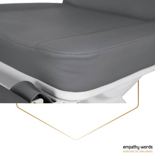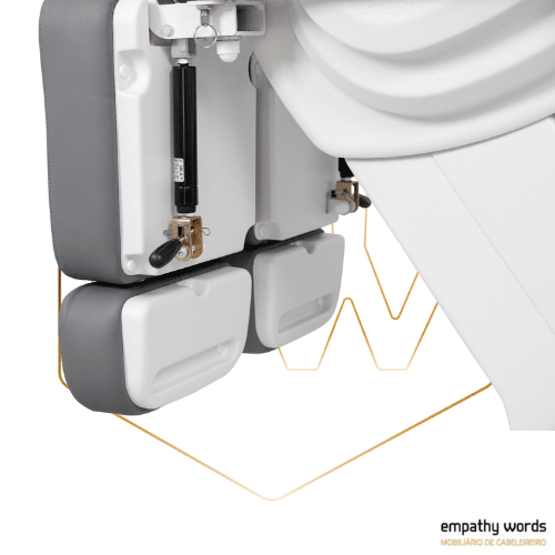 Cadeira de podologia de alta qualidade com estrutura muito estável. Equipada com 3 motores que controlam a altura, a inclinação do encosto e a inclinação do assento. Apoios de pernas ajustáveis ​​em altura independentemente por meio de pistão a gás. Apoios de braços dobráveis ​​e apoio de cabeça ajustável com orifício para o rosto. Estofo branco ou cinzento em PU de alta qualidade e fácil de limpar. Inclui luz LED na base.